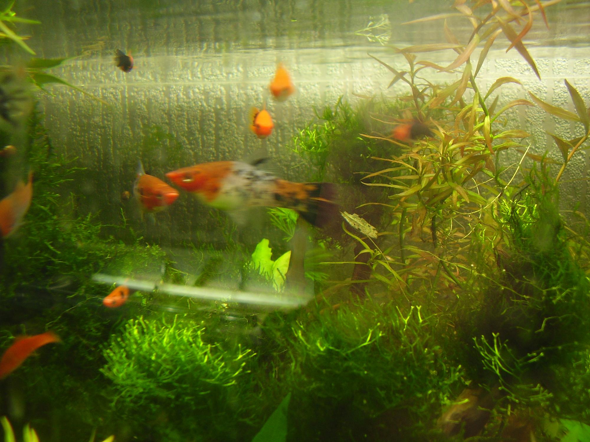 Виктор, я так понял что Меченосцы Коя Санке самки "перезаряжены" другими породами мечей?? Вот фото полученого от них малька (ваши производители,мелочь -ихнее потомство).Ни одного малька похожего на родителей нет.Если так..то самки других видов Санта клаус ,АДА,дисковая пецилия и тд...тоже "заряжены" пересортицей!!!