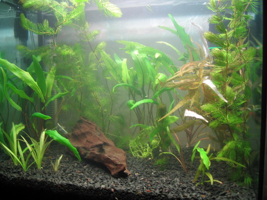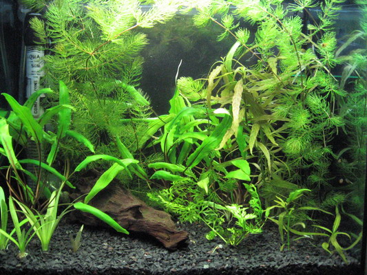 Травка: слева и сзади посредине- криптокорины жёлтые,рядом роголистник воткнул, справа сзади перед фильтром- гигрофила, справа впереди амбулия и элодея, посредине парочка маленьких индийских папоротников, посредине впереди яванский мох, к камушку привязанный, слева впереди эхинодорус карликовый,за ним правее что- то "красненькое", как зовут не знаю, рядом ближе к "лобовому стеклу" возле коряги если не ошибаюсь микрантемум (поправьте, если не так), кстати, уже "пузыряет" вовсю, так же, как элодея, амбулия и уж тем более роголистник  Мабуть скоро нехватка СО2 будет...