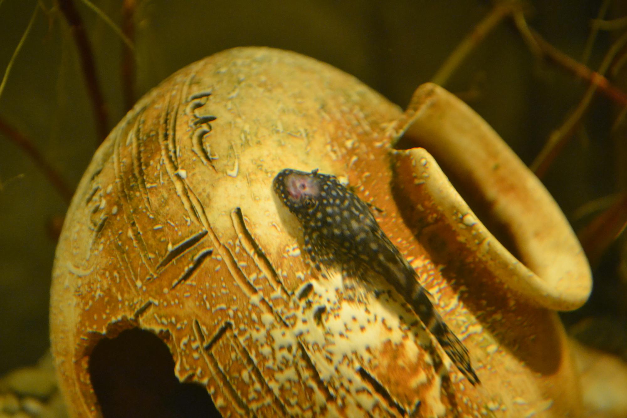 Сначала на голове появилось бело-розовое пятно с маленькой черной точкой, похожей на язвочку! Далее с каждым днем все хуже и хуже: пятно растет и в глубину и в ширь! Такое ощущение, что скоро насквозь проесть тушку сомика! Сом ведет себя вроде как обычно: в меру подвижен, особо не прячется!