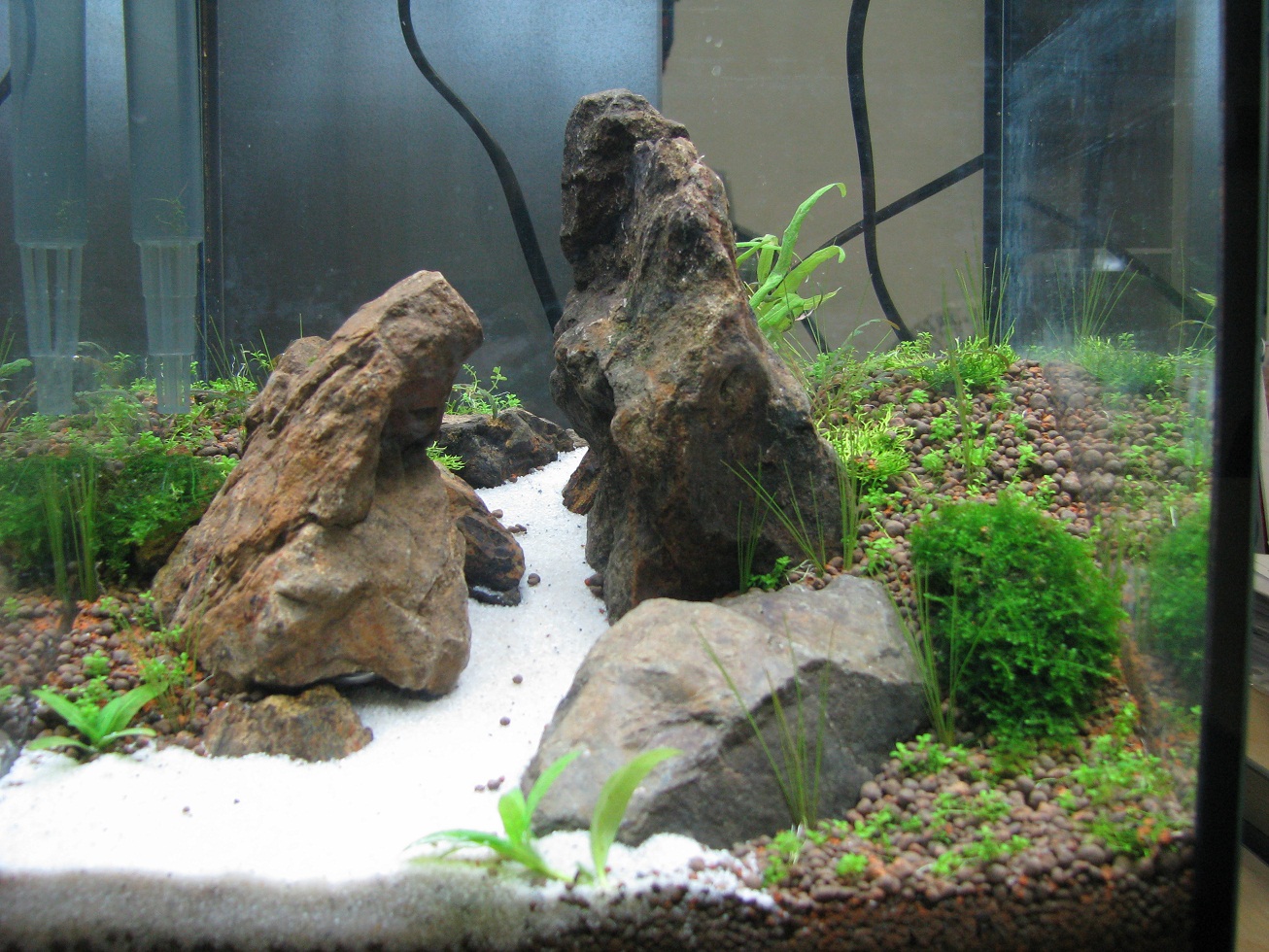 На работе был установлен аквариум и выставлен hardcape.