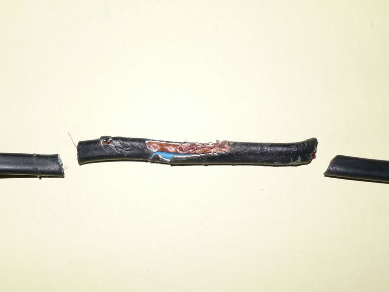 как я просто разрезав(в моем случае удаление поврежденной части провода) ниже металлического крепления,что б можно было беспрепятственно вытащить провод из "колен" крепления