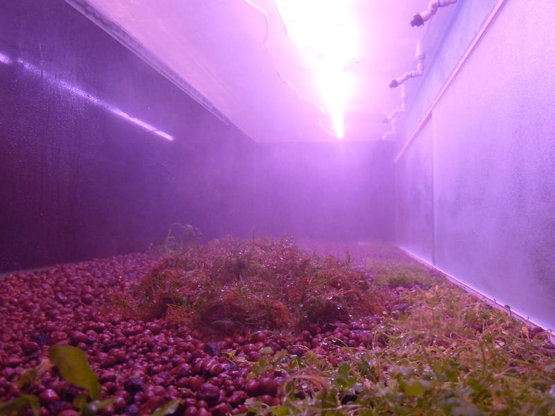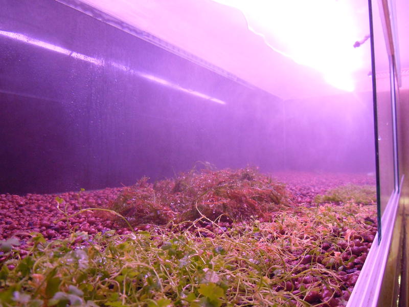 Месяца полтора-два назад начал заращивать стенки мхом,поэтому пока,для удобства работы со стенками,стараюсь держать растючку пониже,недаю высоко подыматься,когда стенки полностью забью,тогда уже дам ,,травушке разгуляться,,.
