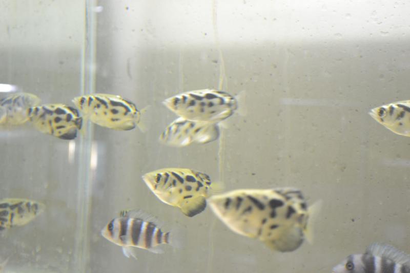 Золотой брызгун .Насколько мне известно пока не разводится в неволи , максимальный размер 15-18 см .Обитает в Бирме .В отличие от остальных Toxotes всю жизнь проводит в пресных водах .