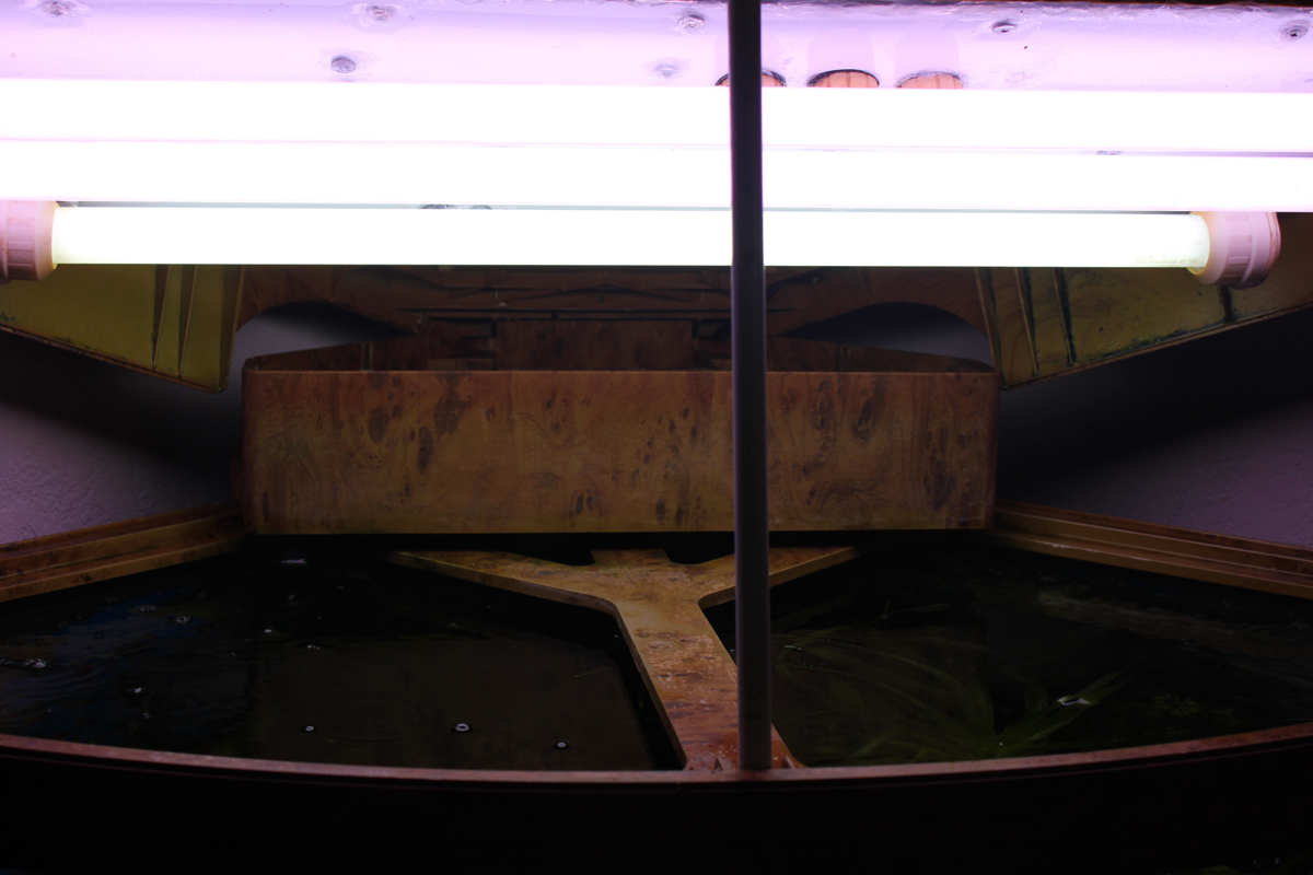 - 2-е зеленые трубки это автоподача УДО, они короткие, заканчиваются сразу после попадания вводу, в аквариуме их невидно;