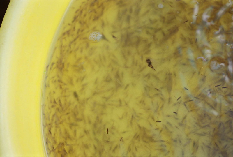 Если присмотреться, то легко заметить, что там есть еще и креветки разных калибров и разные водные насекомые.