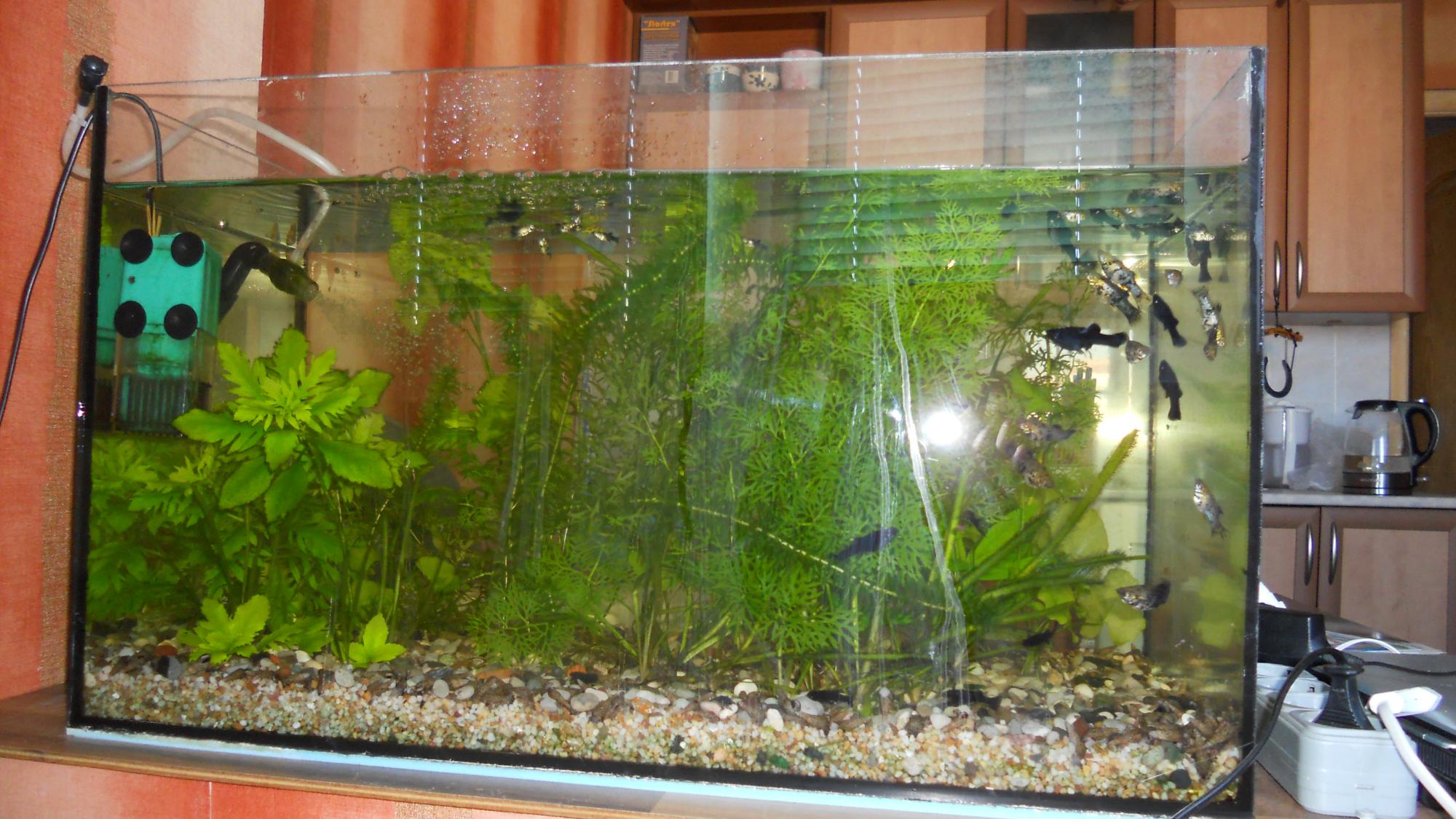 Отдаю с грунтом, растючкой, рыбасами ("жменька" молли), внутр. фильторм, самодельной крышкой из пенопласта.