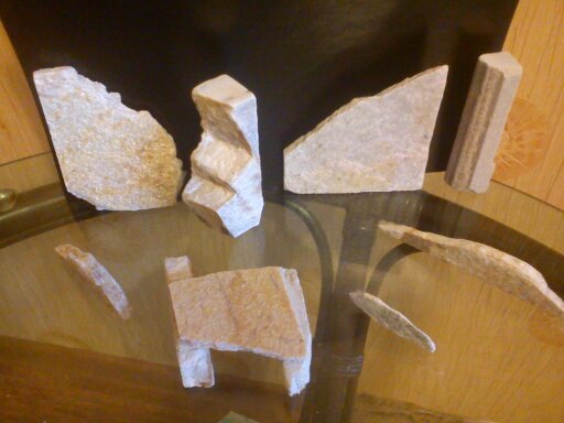 В названии не сильна, брат брал для себя в цихлидник много мелких осталось.На вид как гранит, только блеска больше и прочность слабая, тонкие около 1 см толщиной могу разламать руками ( типа как ракушечник). Брат говорит, что больше на мрамор похож, но ломкий.У меня в креветочнике с чериками они выглядят вот так