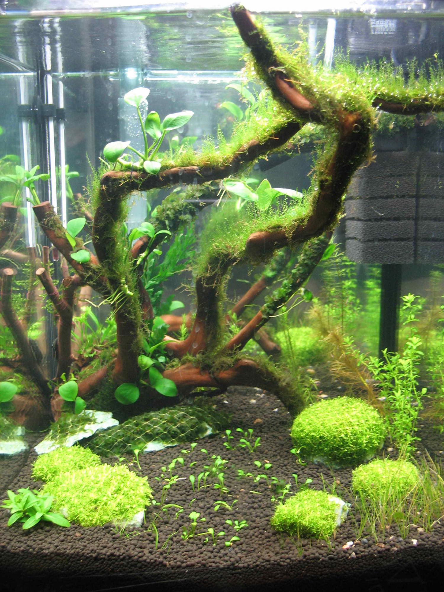 ... сзади коряги высажены папоротники (тайландский, еще есть Винделова) так,что надеюсь, когда пойдут в рост до см 15-20 прикроют левый угол, на заднем плане есть длиностебелька, какая приживется лучше та и займет основопологающие позиции, есть желание еще элеохарис высокий посадить...вообщем эксперементы продолжаются...