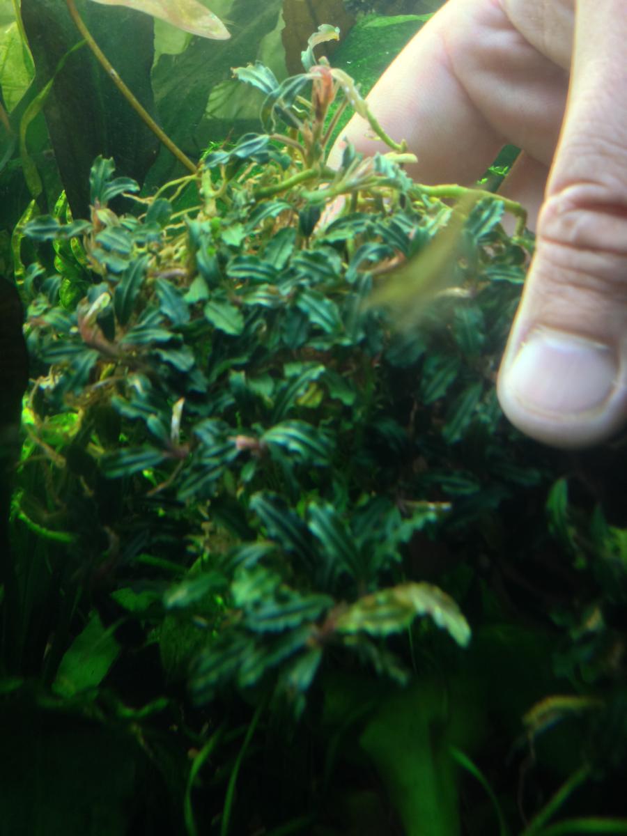 Ув. коллеги хочу вам представить Bucephalandra sp. Krivbass, Ulu Kapuas”. Растение с мелкими листьями, габитус похож на Mini Catherineae.