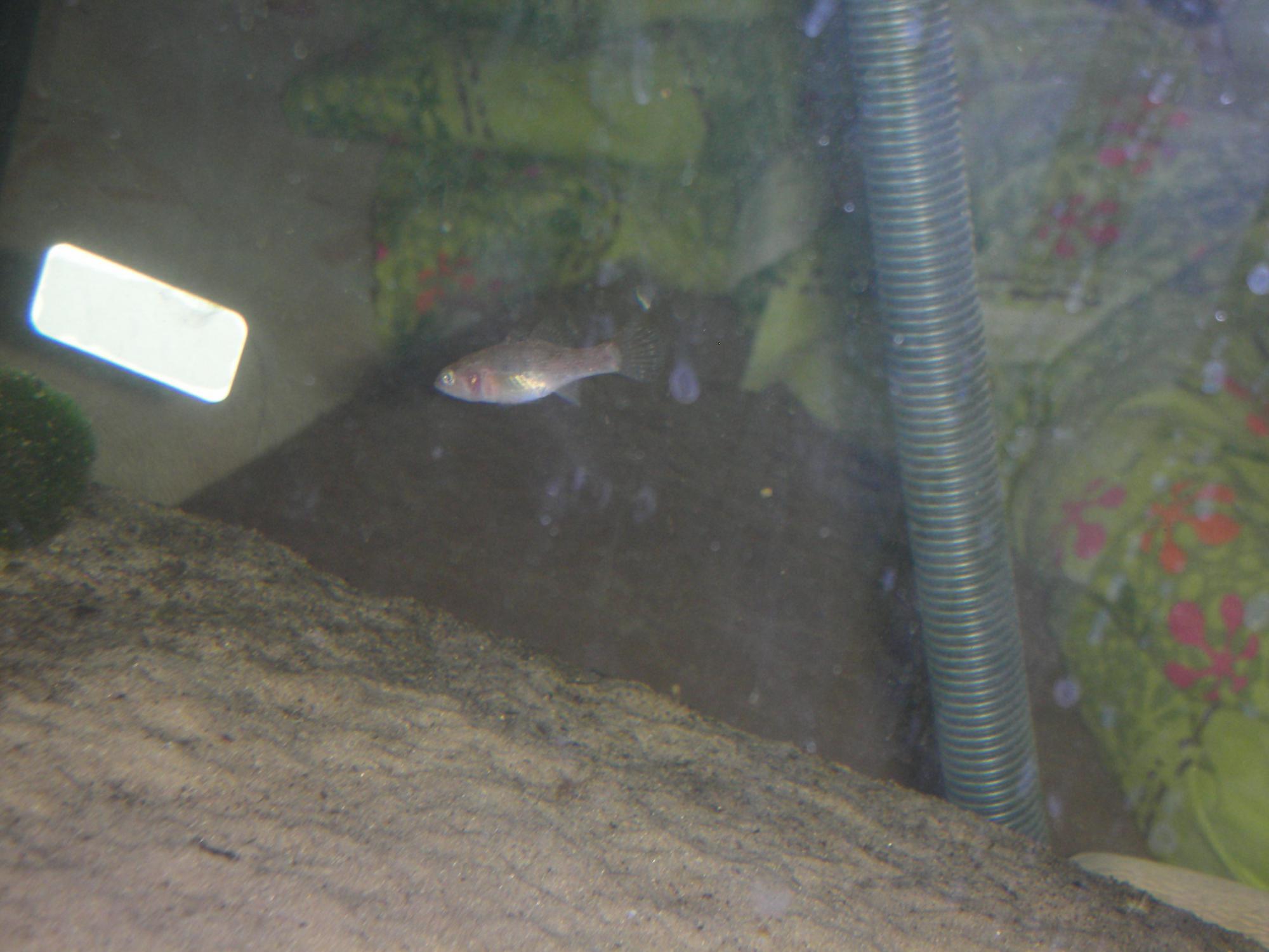 вырос и начал есть своих соседей. сегодня его выловил и пересадил в другой аквариум.