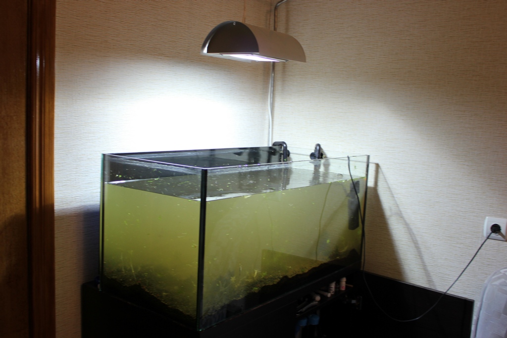 2.Свет- подвесной светильник МГ самопальный аля АДА. Лампа 150ватт АкваАрк Сильвания 10000К. Продолжительность светового дня 8 часов.