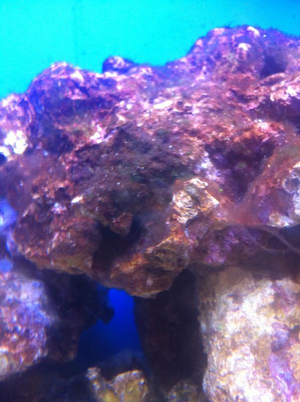 у меня как привез камни и уложил в аквариум какие то оранжевые пятна на них были ночью под синими диодами светились так клево сейчас куда то исчезли  что это могло быть и появиться оно снова?