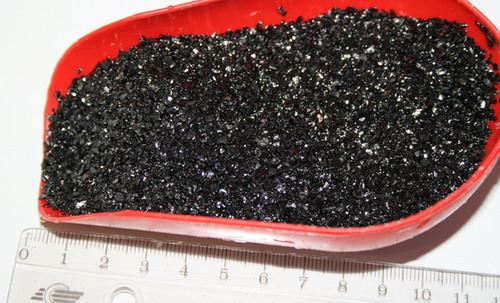 Приобрел в зоомагазине грунт для своего будущего креветочника. На вид и цвет - малкий антрацит. Фракция 2-3 мм, блестит. При промывке руки черные, как от угля для фильтра, залил водой, пленки нет, дальше воду не красит.