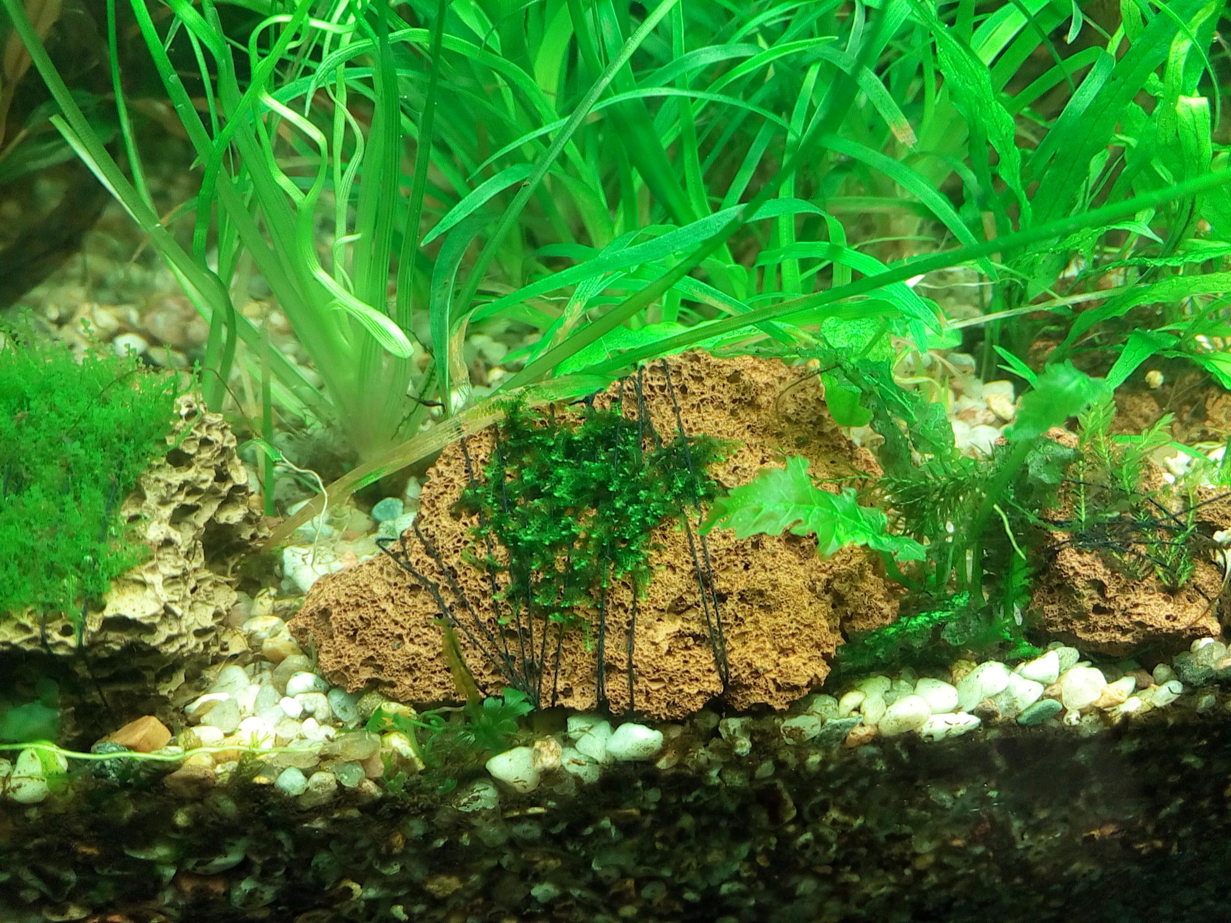 С недавнего времени появился у меня, Moss foliose liverwort «Bodok», информации о нем практически никакой нет. По моим наблюдениям очень медленный, за 3 месяца практически не нарос, только точки роста видны. Кто его содержит опишите в каких условиях растет. У меня параметры:GH-6,KH-4,Ph-7,реминирализованый осмос. подаю удо микро, макро, железо,калий при подменах, остальные мхи растут нормально, а этот ну никак. Пытался сфотографировать но практически ничего не видно: