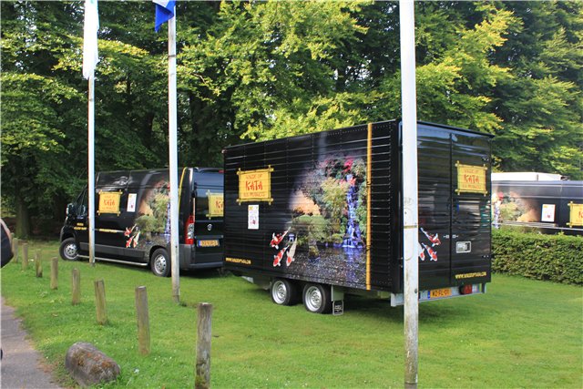 17 августа был первый день кои шоу. Мы были почти с открытия, но людей было уже много. Стоянка была забита машинами. На входе на выставку (как европейцы ее называют "ярмарка") стоял стоял красивейший микро автобус с прицепом компании "Kata"