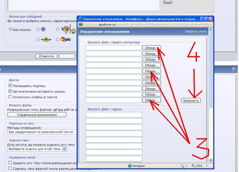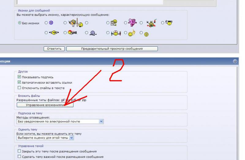 2.Можно разместить фото пользуясь кнопкой "Управление вложениями"