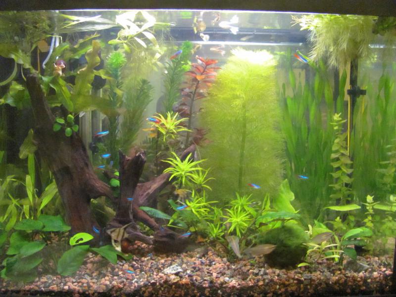 аквас на 72 литра, температура 25.5, днем часа на 4 включаю подачу СО2 - 37 пузырей в мин. освещение в среднем с 8 до 24 флора гло 15 Вт, и две osram delux s 11 W 840? т.е. 37 Вт. живность неоны - 17, три скалярии, три анциструса, два макрогнатуса и два жемчужных гурамчика, три коридораса и ~5 гуппи, штук 5 ампулярий и несколько грунтовых типа мелании, но что это точно не знаю. общая жесткость 12.2, рН 6.8-7, раз в две недели подмена 10 л воды, удо не прибавляю, корм травоед утром и вечером и мотыль мороженный вечером (съедают за минуты две), запущен 5 недель назад.