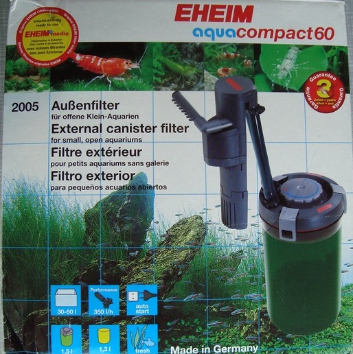 Фильтр Eheim Aqua Compact 60. До этого стоял в 60 литрах, но думаю в 30 тоже будет хорош.