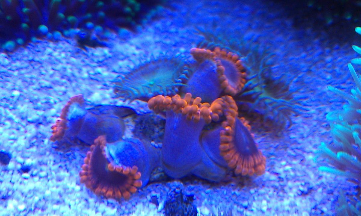 Clavularia papaya с оранжевыми флю полосками, фраги по 450,00