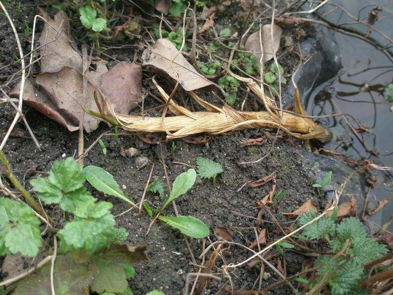Я бы просто притопил корневище ( не зарывая в грунт ) на глубину 5-10 см.