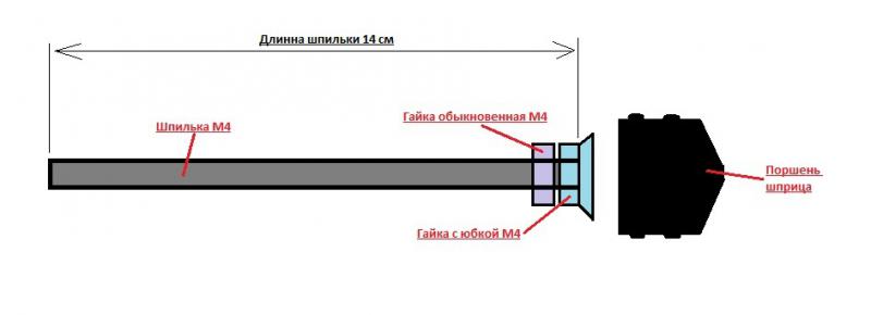 После тестовой прогонки оказалось что нигде и ничего не болтается и не клинет.Мощности мотора хватило бы не только на 7 шприцов.Такое крепление резинки поршня на шпильку позволяет компенсировать неточность установки шприцов и исключает клины поршня, облегчая работу мотору.