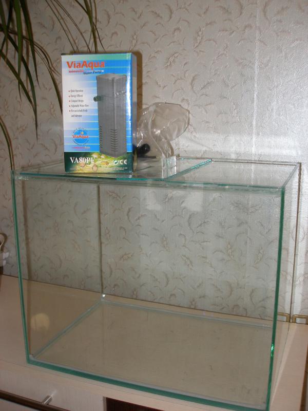 Подарил своему сыну аквариум на 25 литров с покровным стеклом и фильтр-компрессор ViaAqua VA80PE.