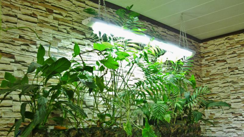 Света все-таки не хватает, поэтому оставила только крупные растения и сингониум.