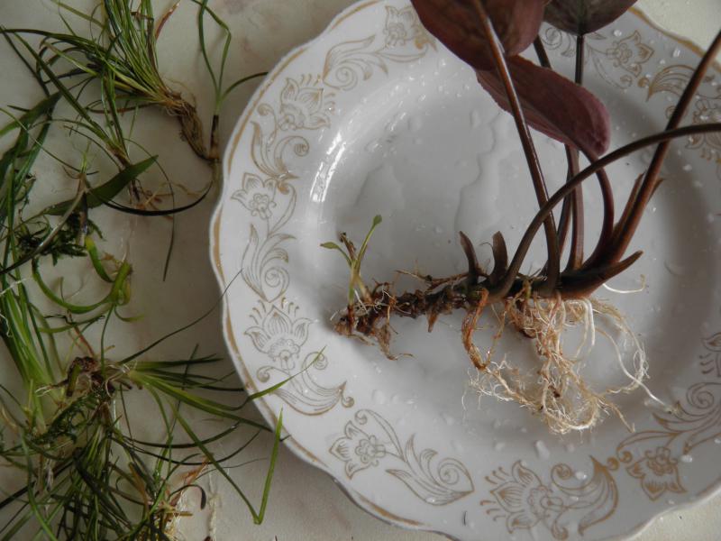 Лагенандра Овата(жила под водой, есть на корневище 2 детки), эх. нежный рубра, и там чего то еще...