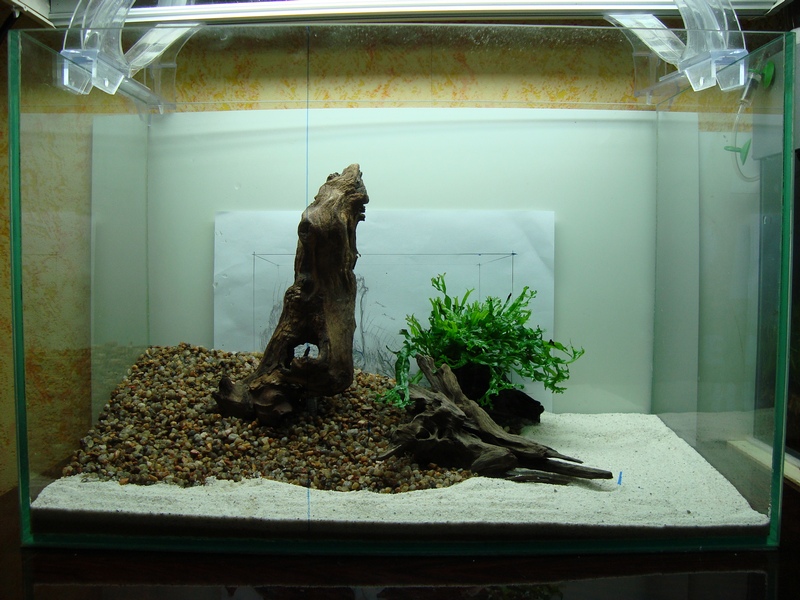 Основная коряга размещена на линии золотого сечения(она делит аквариум в соотношении 1/1.618).