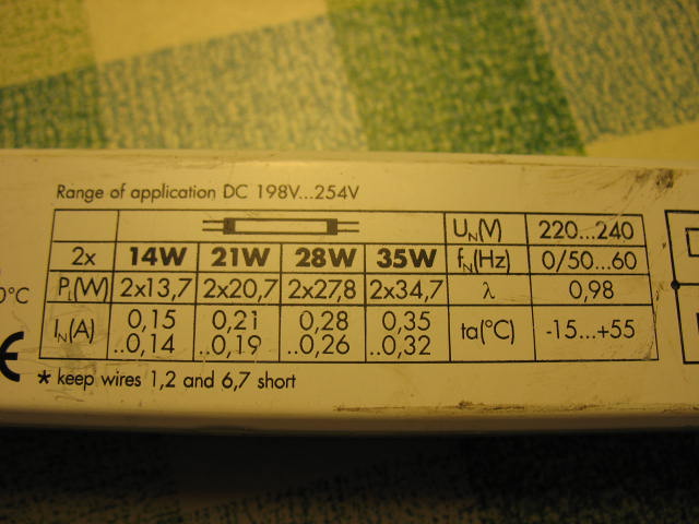 Эпра на 2 лампы от 14 до 35 Вт каждая.На фотках-марка,характеристики,схема включения.Имеют на 30 % больший КПД в сравнении с обычными электромеханическими(у них-50-60 %),не требуется стартер,не гудят. Эксплуатировались не на пределе- с лампами по 14 Ватт, сколько по времени- не знаю, сказать не могу.