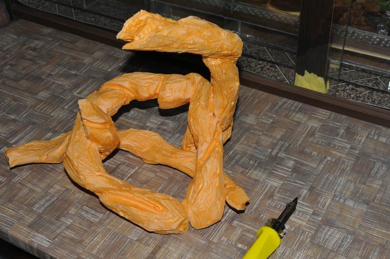 Вырезаем детальки для будущих коряжек. Используем обычный канцелярский нож. Будем делать коряги для террариума с размерами 350х350х300 мм - 1)-классический вариант дерева с корнями и 2)-переплетенные ветки.