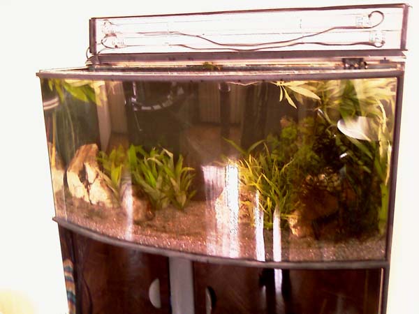 - освещение - 2-е лампы 30Wt комбинация PHILIPS AQUARELLE(под передней стенкой) и Master 827(под задней стенкой), установлен эл.таймер вкл./выкл. Режим освещения – с 8-00 до 20-00=12ч. Лампы заменяются раз в восемь месяцев. Дополнительное освещение отсутствует.