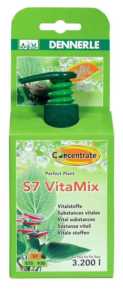 В рамках системы удобрений DENNERLE Düngesystems комплекс S7 VitaMix используется для оптимального питания растений. Он добавляет в аквариум питательные вещества и жизненно важные элементы, которые быстро потребляются растениями и не могут храниться долго. Комплекс S7 VitaMix поддерживает здоровое развитие растений и яркость окраски листвы.