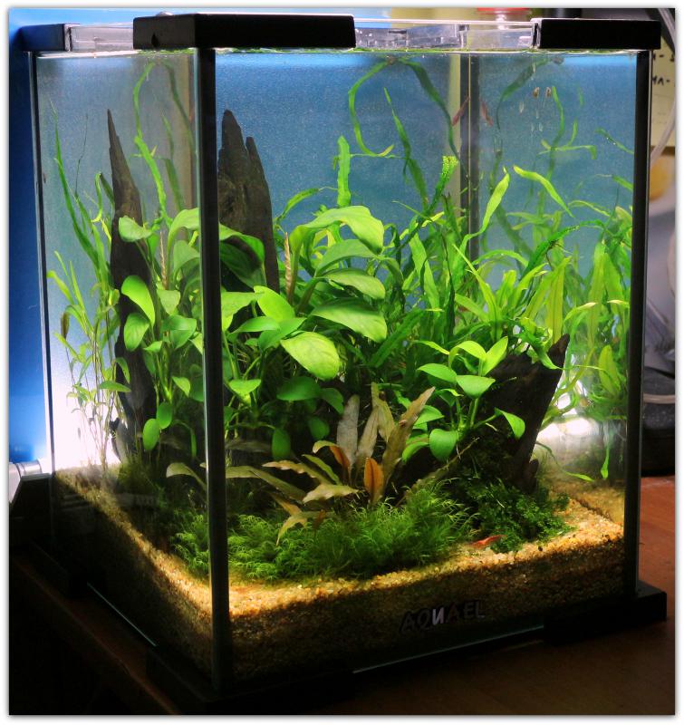 - логотип Aquael пришлось переместить в нижнюю часть аквы ниже уровня грунта, так как будучи расположен вверху по центру он будет портить картинку;