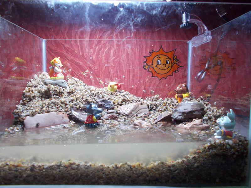 Наконец-то выходной!!! Можно заняться конкурсной работой. Аквариум вымыт, камешки подобраны. А вот и действующие лица, знакомьтесь!