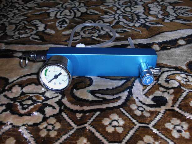 Купил усовершенствованную приблуду для подачи СО2, сделанную из алюминия. Так же как и система на базе крышечек, имеется манометр, клапан аварийного сброса давление, а так же дали 2 запасные прокладки и гибкий шланг. Как Вы понимаете, система сделана "братьями" китайцами, но собрана добротно.