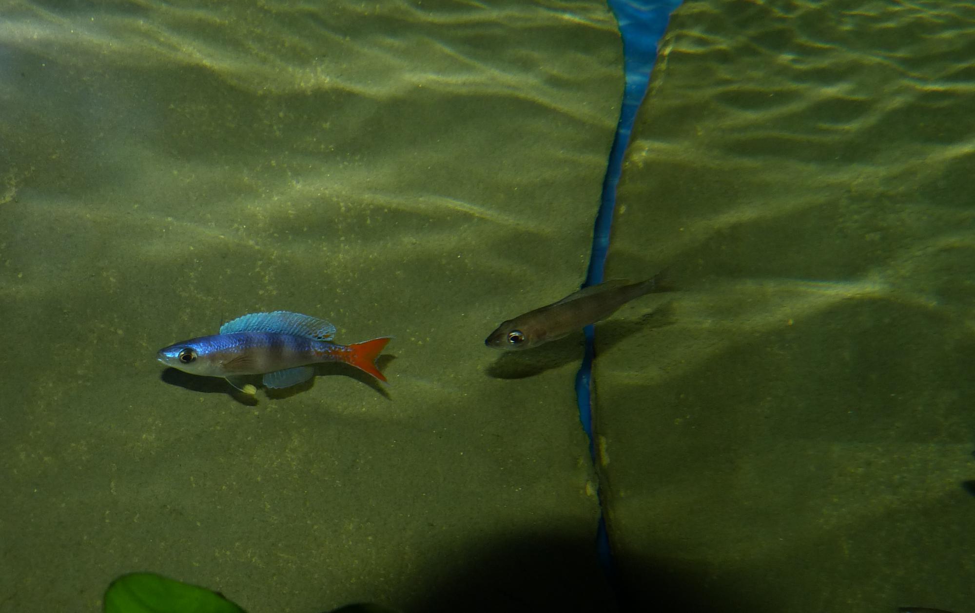 Cyprichromis leptosoma 'jumbo speckleback Moba'. Суть вопроса к знатокам , самцы по чему то все разные по цвету . Или это может быть у них ? Доминант очень симпотный , два других не пойми что .Или я ошибаюсь по поводу пола? Как я понимаю это самец