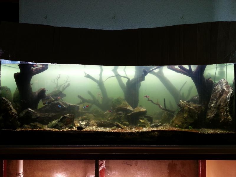 Начало создания нового скейпа.Правая часть аквариума не сделана вообще.Так что она не в счет.Левая чуток доработается и добавится то,что будет значимой частью скейпа.А также добавятся корни,торчащие из камней