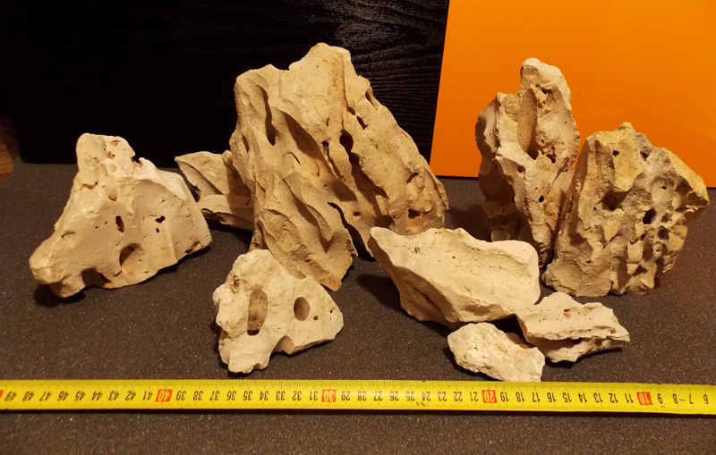 Уважаемые аквариумисты,понимаю что данная тема не всех заинтересует,но выхода нет!По своей неопытности (так как я новичок) приобрела для запуска новой аквы такие камушки,очень фактурные,похожие на ohko stone (которые мне нравятся,но цена кусается). Приперла их домой,отмыла,выварила,а уж потом решила проверить на уксус,а они реагируют!Не скажу что прям пузырят,скорее слегка шипят,но в травник класть их я не рискну.Может кому подойдут для цихлидника.Так вот,меняю на набор камней для травника или красивую корягу(моя аква д.70*ш.35*в45)Территориально нахожусь в Киеве, Печерский р-он. Пересылками заниматься не хотелось бы.Отдельный бонусный камень в композицию не влез,но может кто и втулит,камней всего 11шт. В породах сильно не разбираюсь,но мне подсказали что это вроде туф или известняк.