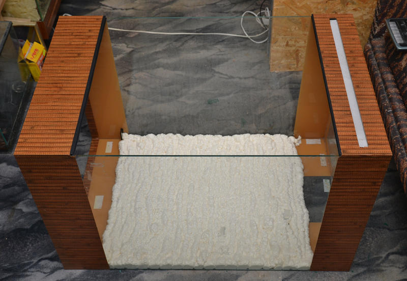 в передней части сделал нбольшой водоем глубиной 4см,там позже думаю тоже кинуть немного растючки которая плавает на поверхности