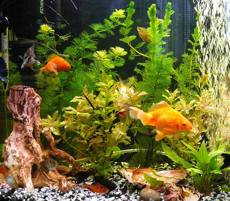 Ну, можно эхи гибридные большие закопать и камнями попридавливать. И аналогично валиснерию (отрастает, полагаю, быстрее чем золотухи ее раздербанят). Но это все теория - лишь 1 раз держал 1 золотую рыбку.