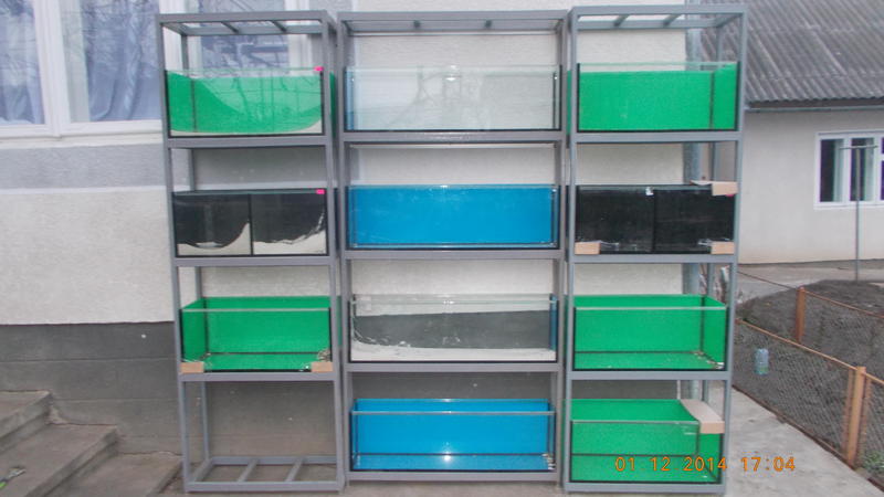 Можливий продаж як по одній стойці,так і скопом,також можливий продаж самих стойок і самих акваріумів. Ціна за всі три стойки+11акваріумів-2500грн.