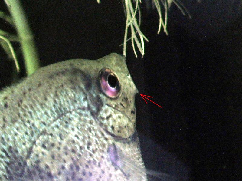 Посмотрите на мою скалярию, отстаёт в росте, испражнения были прозрачными, сейчас замачиваю корм в метрогиле, вроде-пищеварение наладилось. Беспокоит, то что появилось на его лице. Выглядит, как прыщик, а из него торчит белый стержень. По- поведению скаляр -активный! И еще, местами, побледнела (вернее стала более прозрачной) окраска на плавниках!