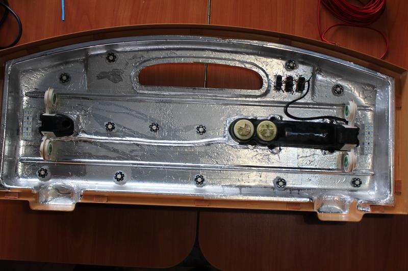 Вся пленка и добавленные лампы были удалены и место оракала начал клеить алюминиевый сантехнический скотч - он довольно хорошо липнет к всему, стоит не дорого (рулон в районе 60грн) и все таки натуральный алюминий, а не пленка: