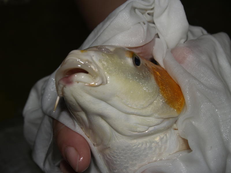 Фотик у меня не плохой, а вот ручки немного подкачали))) Ну, ничего, я только учусь. Собственно вот фото самого "запущенного" пациента, у второго карпика намного меньше и еще у одного заметил только намек на синеву.