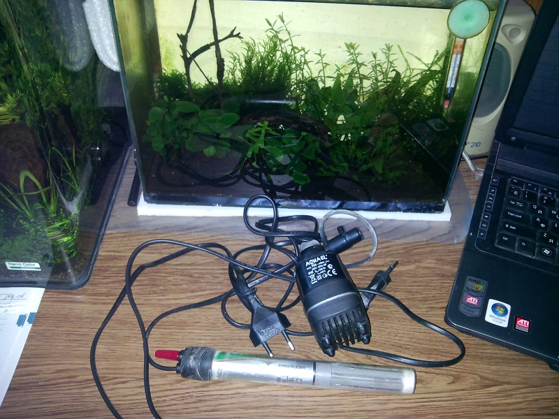 3 . Комплект№3: аквариум (31.5х13.5х24в) есть незначительные сколы, не течет+ обогреватель Jebo 25W + фильтр Aquael FAN-micro + подложка под аквариум + градусник + все, что аквариуме (Dennerle -шные пит. подложка и черный грунт, пару коряжек, растючка, неокардины). Деребанить не буду, воду спущу, помогу вынести с подъезда. фото №8-10 цена 70грн за комплект