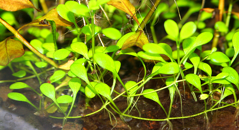 При посадке глоссостигму следует разделить на отдельные мутовки по два листа и каждую посадить на расстоянии 1-2 см друг от друга. Этого вполне достаточно чтобы при надлежащих условиях через месяц получить коврик глоссостигмы.