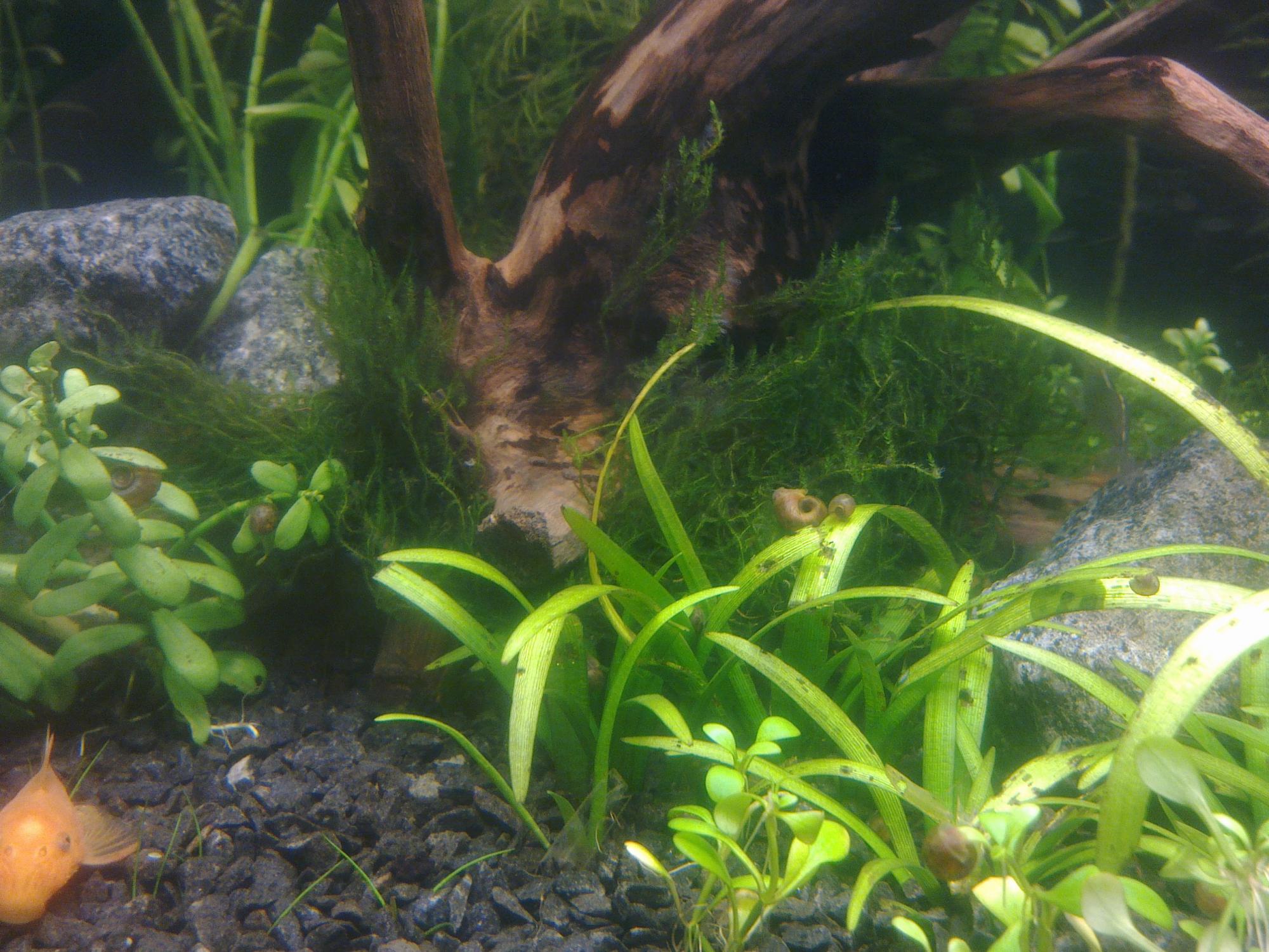Следующий аквариум 60 л. Запущен 3 недели как. Тут тоже на коряге.
