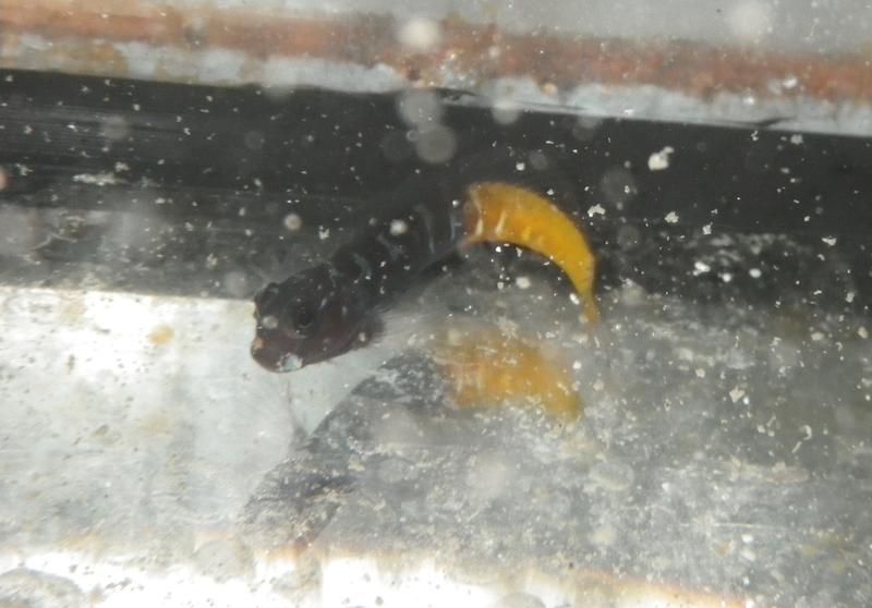 Рыба адаптирована и кушает замороженный корм.