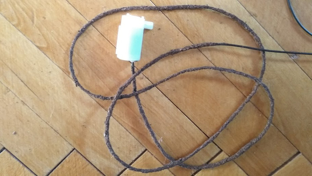 Провід помпи вирішив задекорувати під ліану - силікон плюс кокосова стружка.